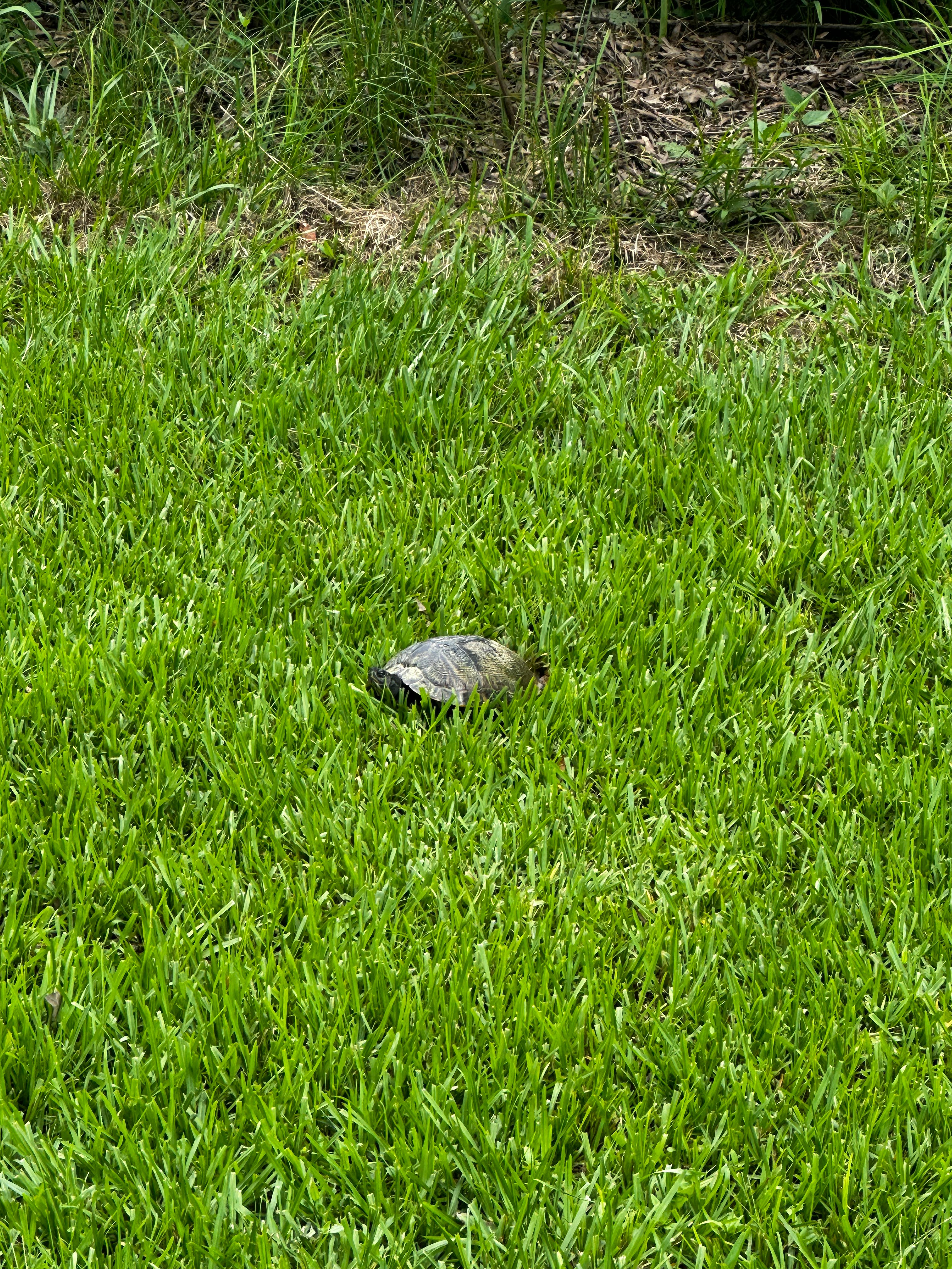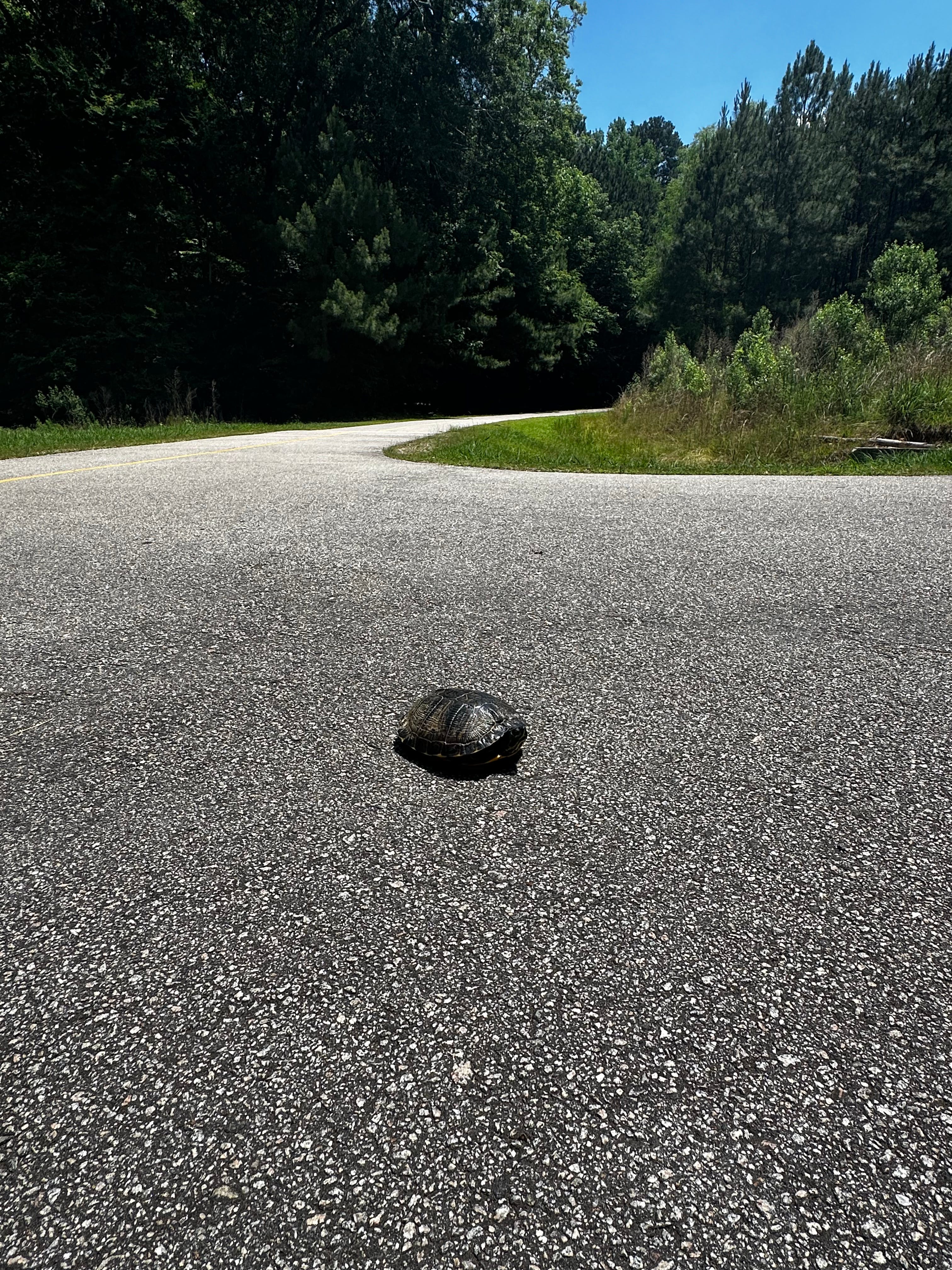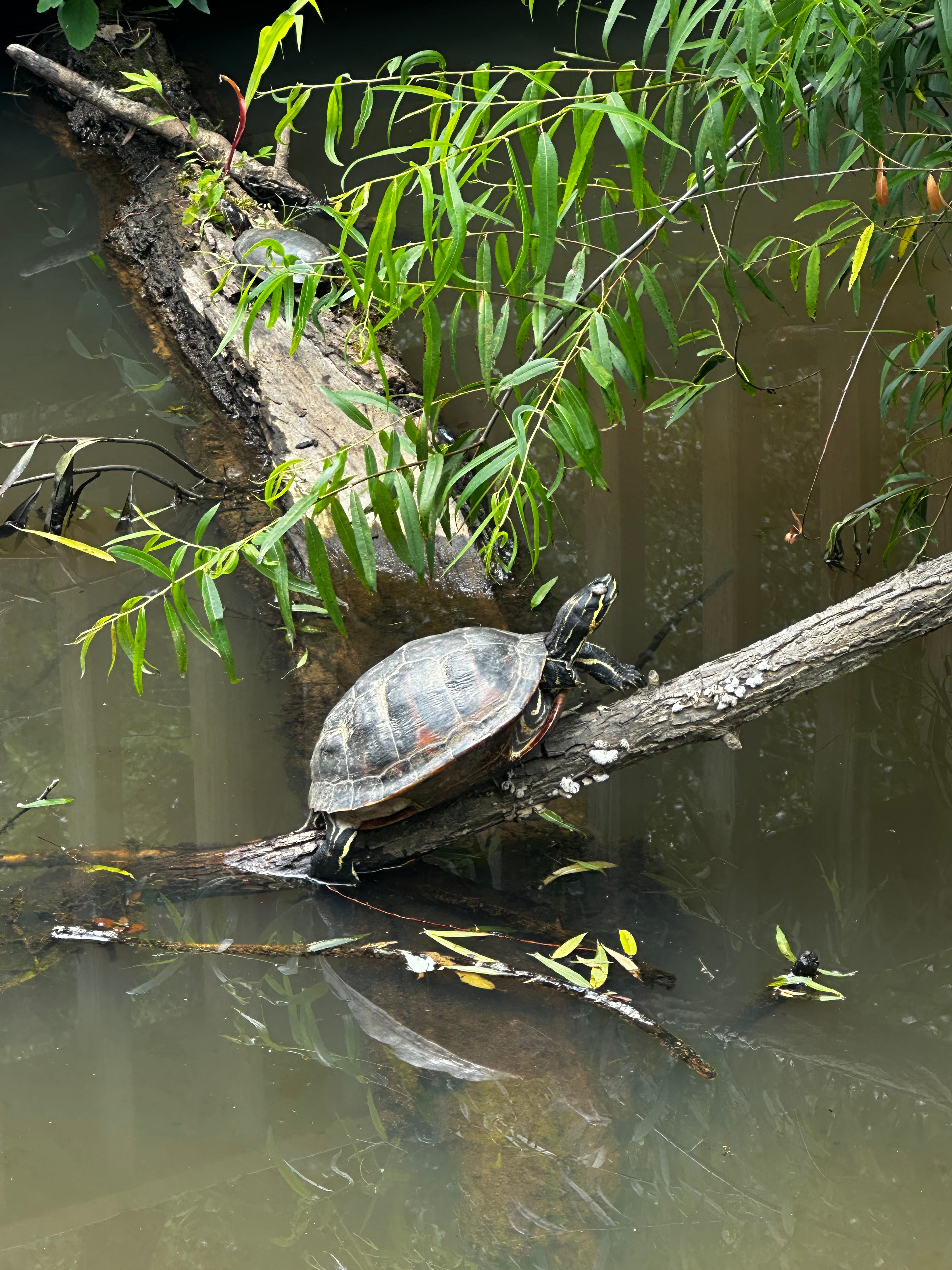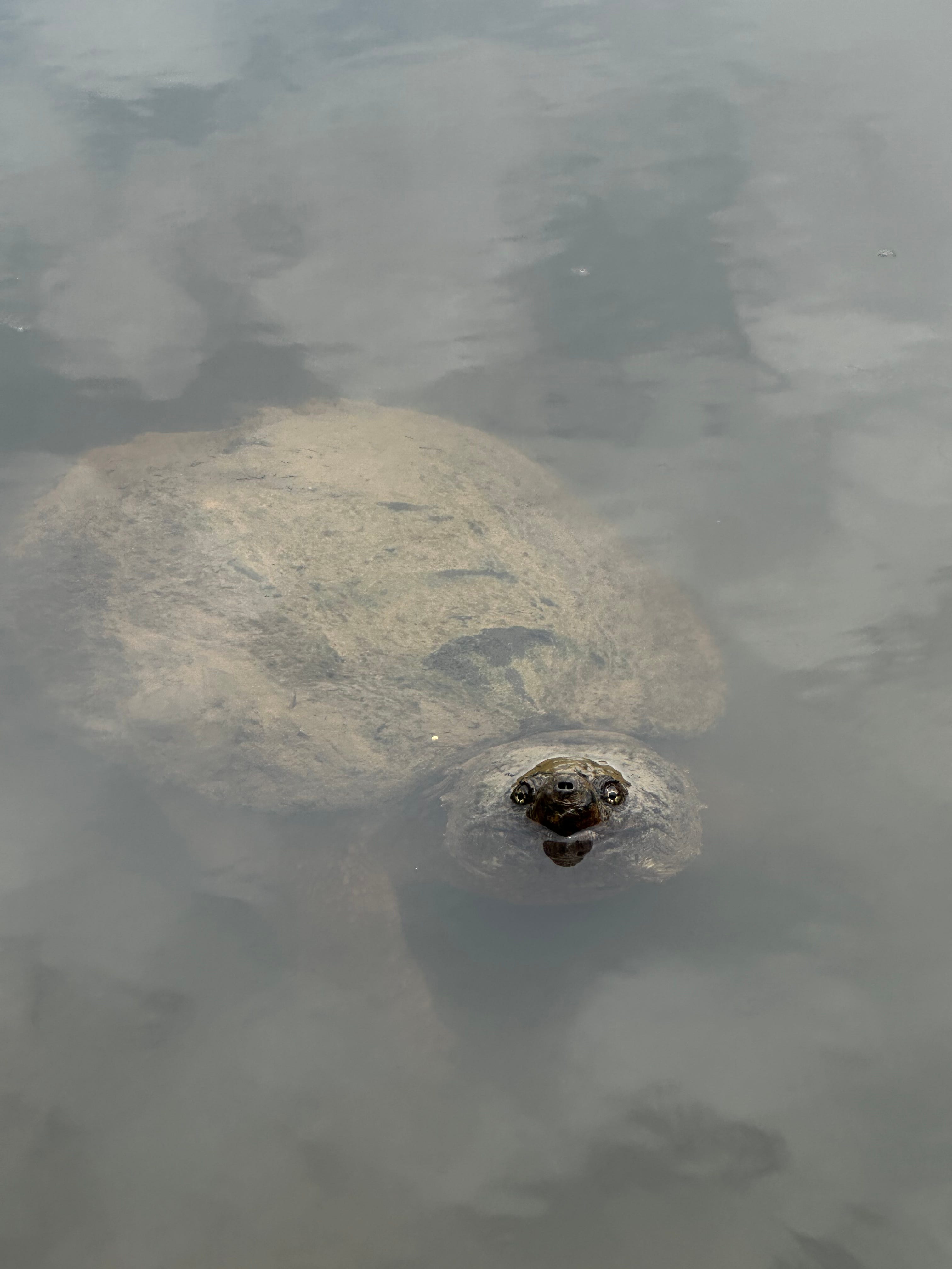 i’m not sure if this is specific to spring either, but i have been seeing so many turtles along the Neuse River Greenway, as well as places where I expect to see them: basking in the sun or swimming through the water at Lake Lynn and Shelley Lake. i was at Lake Lynn today and saw this absolute unit of a turtle. he looked to me like a snapping turtle but i can’t be sure. he looked prehistoric… covered in mud, beady eyes, with a long pointy tail and webbed claws. the other, smaller turtles seemed to coexist with him peacefully. they would swim near him as though he wasn’t a behemoth of a thing…