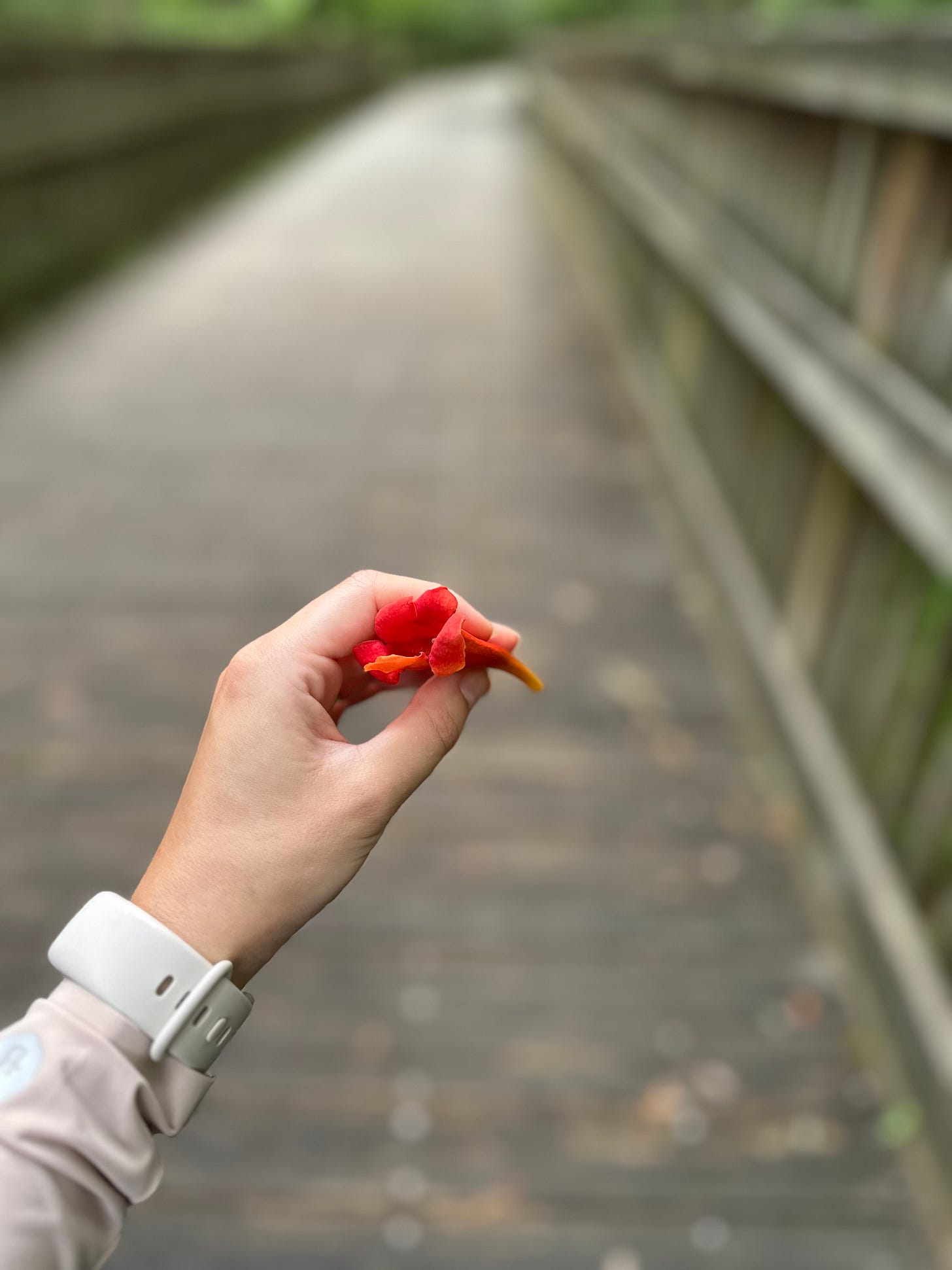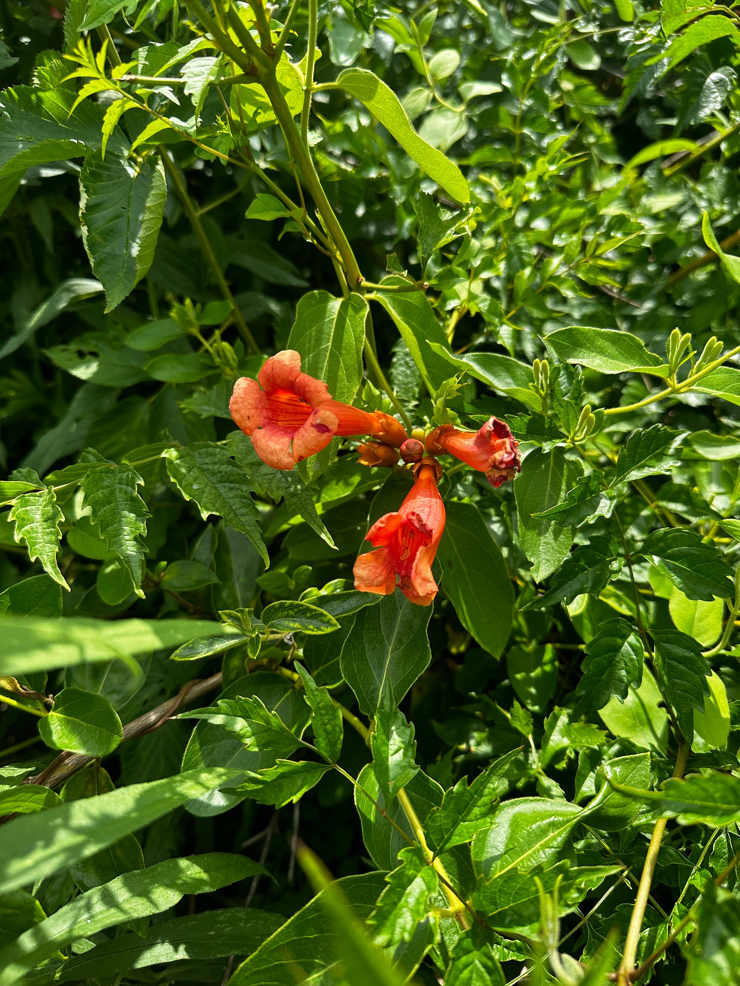 another delight i see on my walks is the trumpet creeper, which is aptly named for its trumpet-shaped flowers. my first thought was that they look tailor-made for hummingbirds (more on that in a sec!), and sure enough, Wiki is telling me that it’s very attractive to ruby-throated hummingbirds. what’s special about these flowers, aside from their cute shape, is how high they can climb. they creep up along trees, meaning they are sometimes way higher than my eye level!